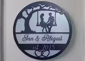 “Together Forever” beautifully captures the warmth of love and partnership in an elegant, handcrafted design. This 11-inch round plaque is laser-cut from ¼-inch wood, featuring a couple on a swing beneath a tree — a timeless symbol of connection and devotion. The piece is fully personalized with names and an established year, making it a perfect gift for weddings, anniversaries, or new homes.